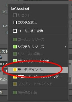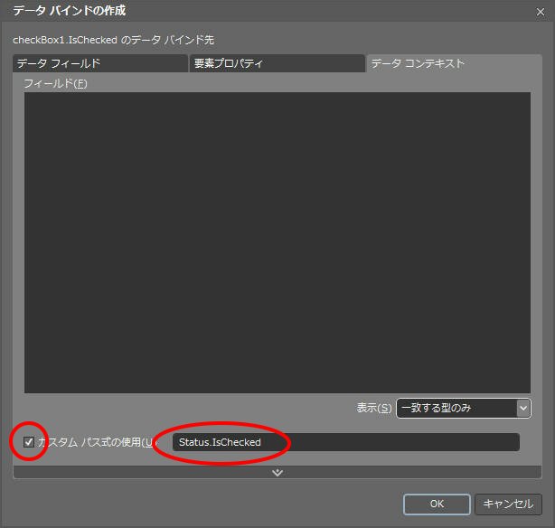 バインドの作成」ダイアログが表示されたら、「データ コンテキスト」タブを押して